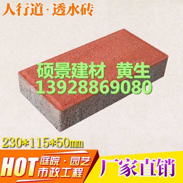 如何辨別透水磚質(zhì)量: 顧名思義,所謂的透水磚,關(guān)鍵在于“透水”,透水性越好,則質(zhì)量越好,好的透水磚能夠解決城市地表硬化,營造高質(zhì)量的自然生活環(huán)境,維護城市生態(tài)平衡而隆重誕生的世紀環(huán)保建材新產(chǎn)品。透水磚具有保持地面的透水性、保濕性,防滑、高強度、抗寒、耐風化、降噪、吸 音等特點。?