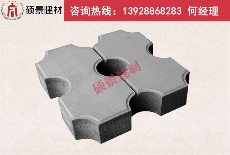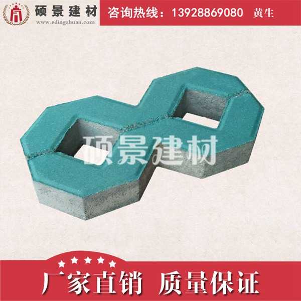 植草磚的尺寸規格: A、井字形植草磚,這種形狀我們生活中隨處可見。這種井字形的植草磚的規格是250×190×75。B、九孔形植草磚。這種磚的規格是300×300×75。相對于井字形植草磚來說要大一些。C、8字形植草磚。這種磚就是利用8字中間的空心來種植小草,這種磚的規格是400×200×75。九孔形的植草磚,顧名思義拼起來會在磚的周圍形成九個孔,在磚空隙的地方進行綠化施工。圖片展示得十分形象。雖然圖中的磚看起來有點死氣沉沉,但是我們可以想象種上小草之后的樣子。肯定是綠草油油,十分的喜人。整個被裝飾的路面頓時增添了幾分大自然的氣息,路人看起來的心情應該也不一樣吧。